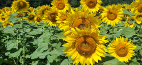 Che sia per coincidenze nella turnazione della coltivazione, alternate ogni quattro o tre anni con la semina di frumento o di altro cereale, sarà per particolari condizioni ambientali e atmosferiche che ne favoriscono la fioritura, ogni anno tra giugno e luglio, ecco che diventa una distesa di girasoli, grandi, piccoli, addirittura anche giganti .