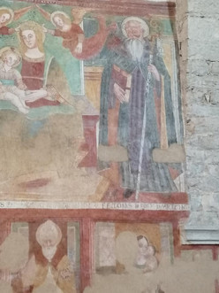 Le pareti interne del Santuario sono decorate di un prezioso ciclo di affreschi della prima metà del Cinquecento (1510-1534). Si tratta di ex voto, 159 figure intere di Madonne e di santi oggetto della devozione popolare. Ad essi la gente ricorreva nei momenti di bisogno: pregava S. Antonio abate che proteggesse gli animali domestici da malattie e incidenti, S. Rocco e S. Sebastiano che allontanassero le malattie e le pestilenza, le S.S. Apollonia e Lucia perché tenessero lontano, rispettivamente, il mal di denti e il male agli occhi, S. Liberata perché assistesse le partoriente e così via. suo santuario, che venne costruito e chiamato Madonna dell'Avello (uguale pietra) .